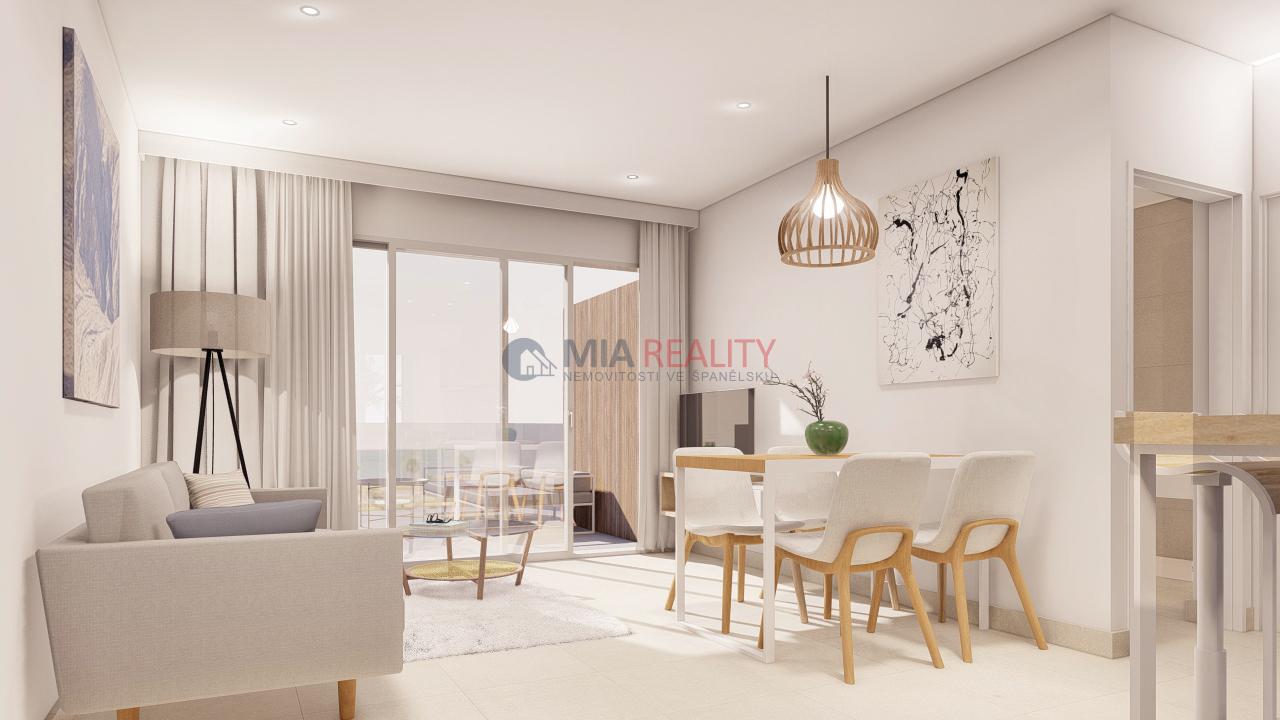 Obytný prostor je navržen v otevřeném moderním stylu s obývacím pokojem, jídelnou a kuchyní v jedné oblasti, která je navržena tak, aby maximalizovala přirozené světlo a propojila vnitřní a venkovní prostor – ideální pro plné vychutnání středomořského životního stylu.
