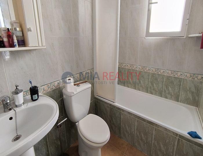 V přízemí najdete světlý obývací pokoj s jídelnou, dobře vybavenou kuchyň s barovým pultem a praktickou úložnou místnost. Zadní terasa byla uzavřena a přeměněna na funkční technickou místnost. Dále je zde prostorná dvoulůžková ložnice s vestavěnou skříní a rodinná koupelna vybavená moderním vybavením.