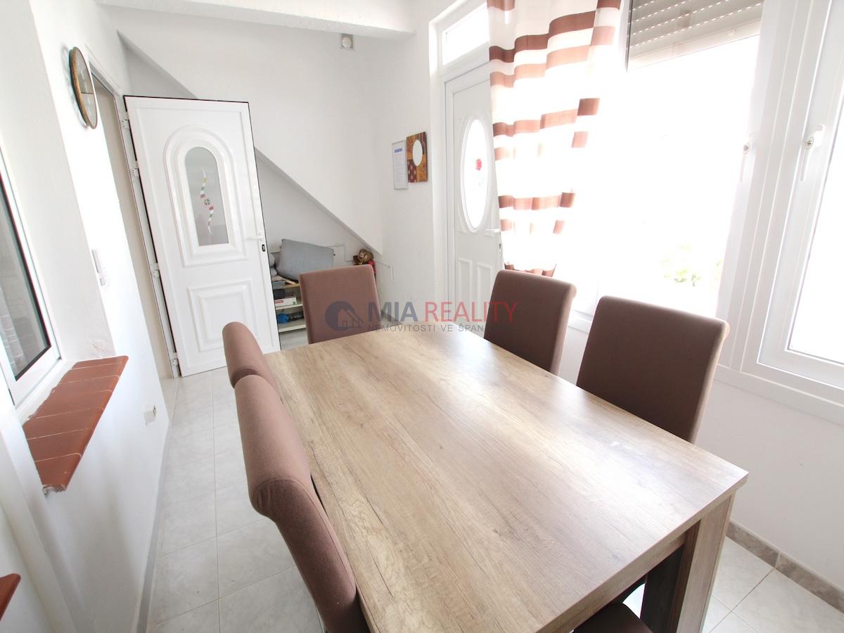 Uvnitř domu se nachází uzavřená terasa, která v současnosti slouží jako formální jídelna, obývací pokoj, plně vybavená kuchyň, dvě dvoulůžkové ložnice, hlavní ložnice s vestavěnými skříněmi, a vybavená koupelna. V zadní části domu se nachází praktický úložný prostor.