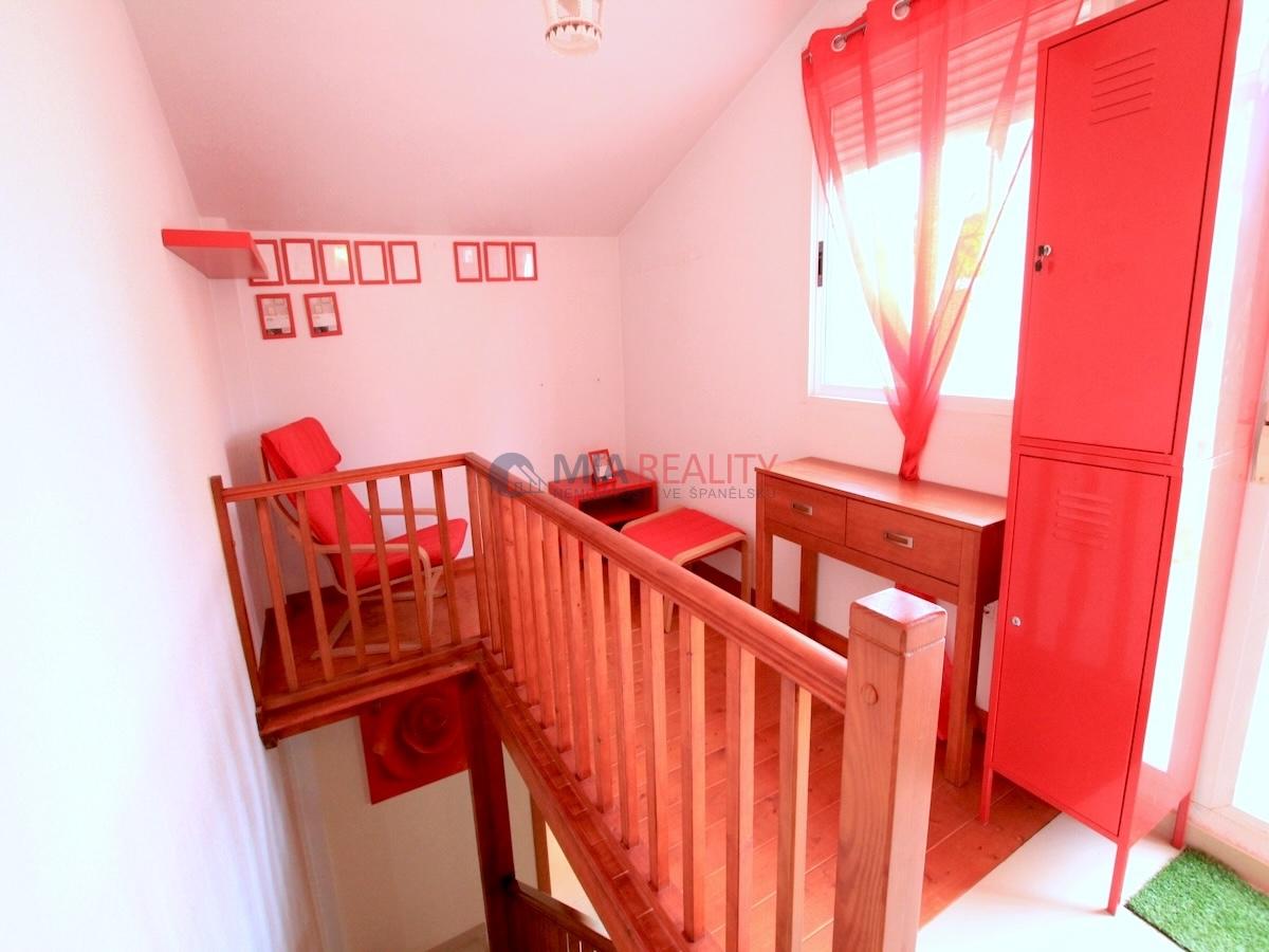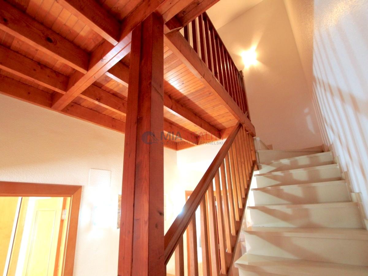 Vnitřní schody vedou do druhého patra, kde se nachází univerzální prostor nebo domácí kancelář s přístupem na nádhernou střešní terasu – ideální místo pro opalování s krásným panoramatickým výhledem.