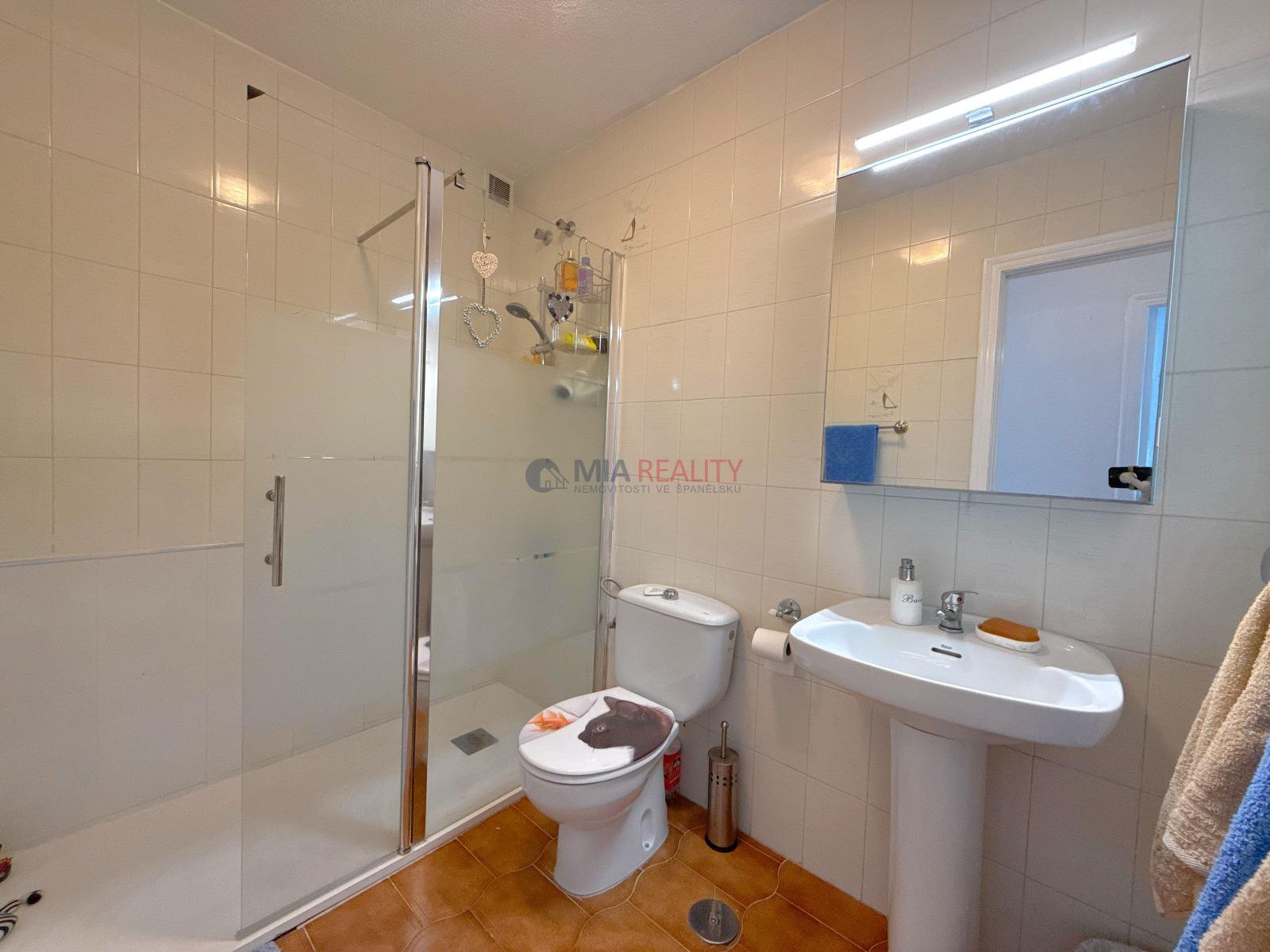 V přízemí jsou dvě dvoulůžkové ložnice, obě s klimatizací a vestavěnými skříněmi, a stylovou koupelnu se sprchovým koutem. Pohodlné schodiště vede do třetí ložnice v horním patře, která má vlastní koupelnu a přímý přístup velkou střešní terasu. Odtud je krásný otevřený výhled na okolí.
