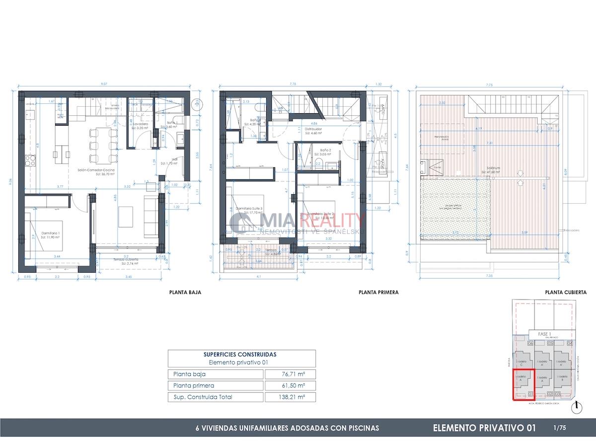 Obytná plocha zahrnuje 3 ložnice, 3 koupelny, otevřený obytný prostor, kuchyň a velkou zahradu.