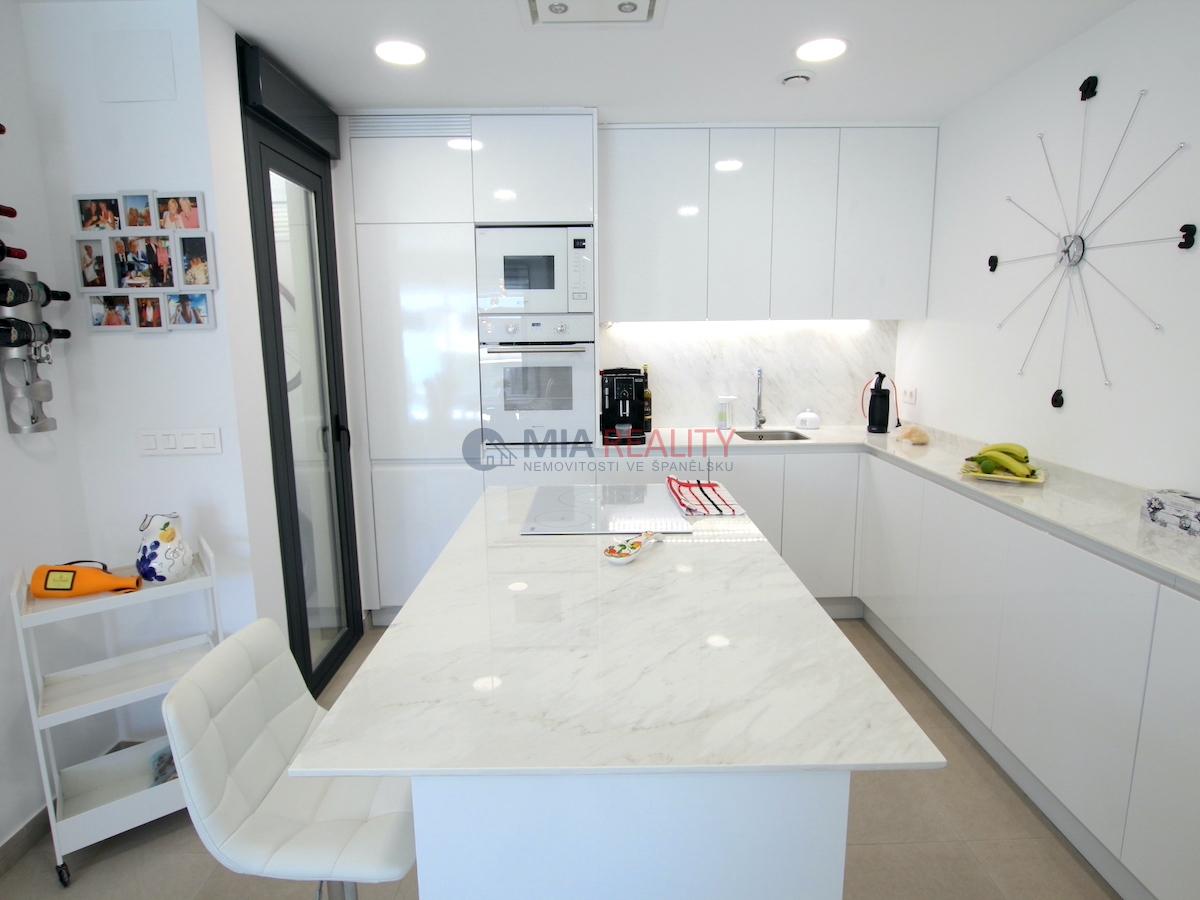 V přízemí se nachází velký obývací a jídelní prostor, designová kuchyně, vybavená dostatečným pracovním prostorem, úložnými prostory a špičkovými spotřebiči. Dále je zde praktická technická místnost a WC.