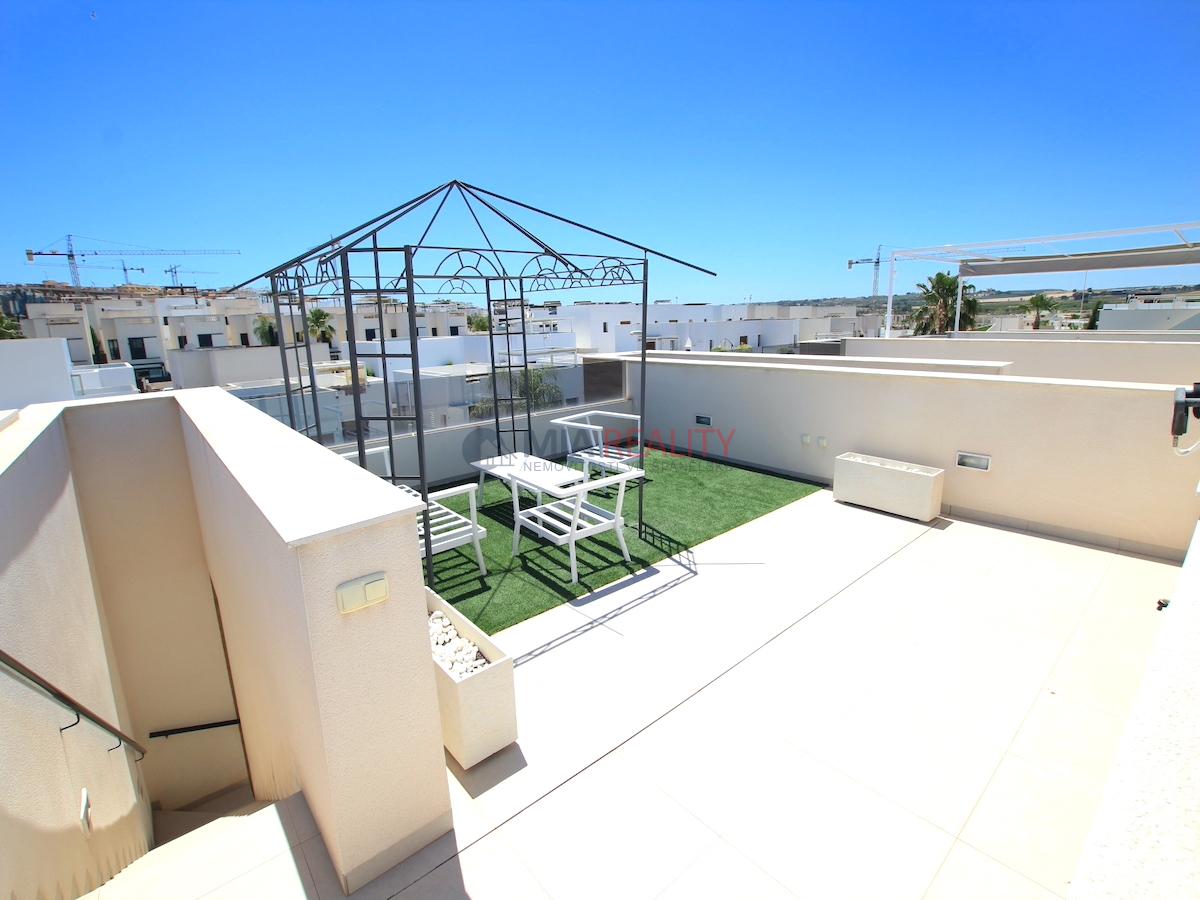 Venkovní schody vedou na úžasné střešní solárium, které nabízí úchvatný výhled na nedaleké pohoří Sierra De Callosa.