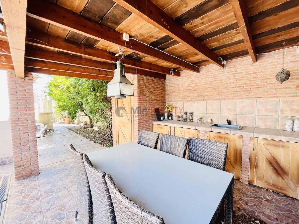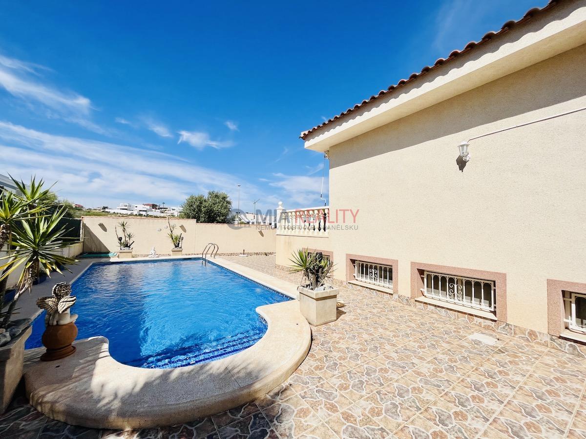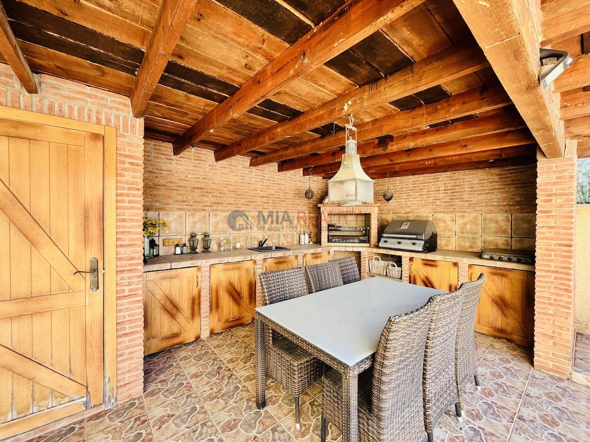 Vila má snadno udržovatelnou zahradu, velkou kuchyň/gril ve venkovním prostoru s výhledem na bazén.