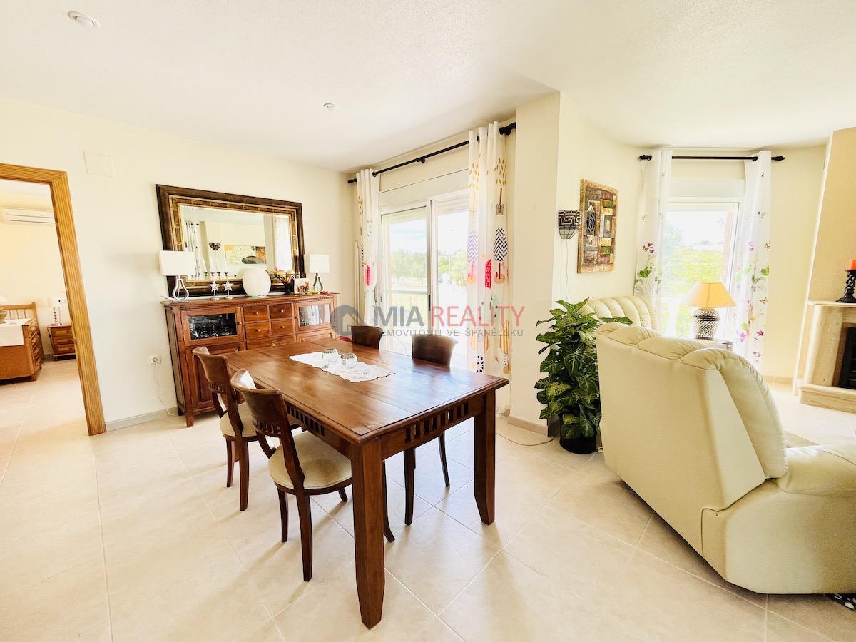 Z obývacího pokoje je přístup na krásnou prosklenou terasu a z jídelny na druhou terasu, která vede k bazénu, kde můžete relaxovat a užívat si slunce.