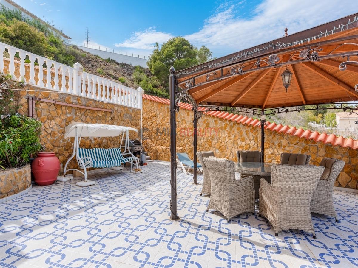 Venku vila nabízí několik prostor pro relaxaci a zábavu, včetně soukromého bazénu, několika teras a zastíněného pergolového posezení. Mezi další vybavení patří soukromá garáž, samostatná komora, klimatizace, vestavěné skříně a východní orientace.