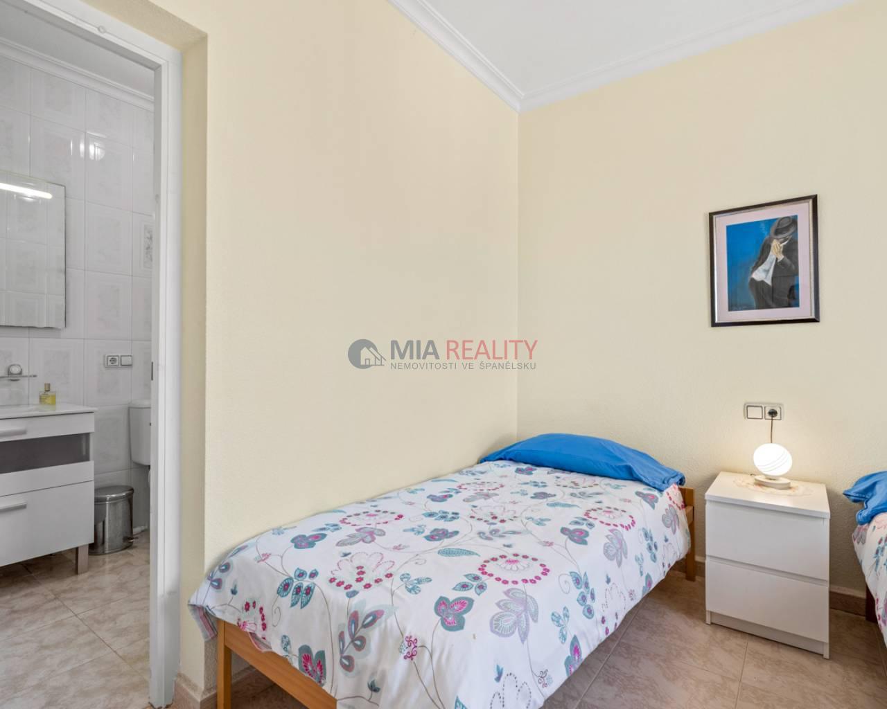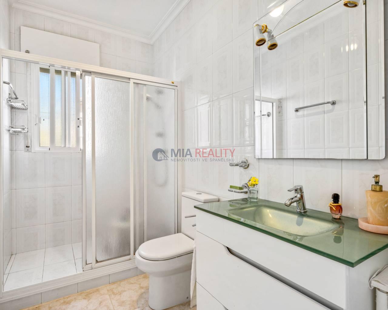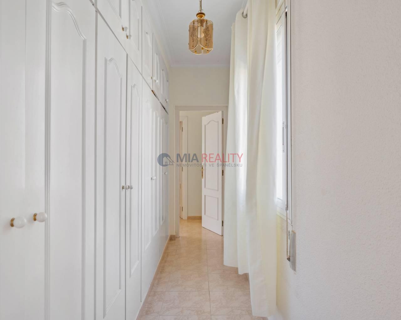 Po vstupu do prvního patra je chodba vedoucí do dvou prostorných ložnic, obě s vestavěnými skříněmi. Hlavní ložnice má velkou vlastní koupelnu, dostatek úložného prostoru a terasové dveře, které se otevírají na soukromou terasu – ideální místo pro relaxaci s krásným výhledem. Dále je zde salonek s jídelnou a kuchyň.
