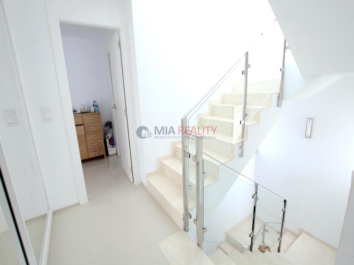 Obytné prostory jsou na dvou podlažích a k dispozici je velké 60m² sluneční solárium!