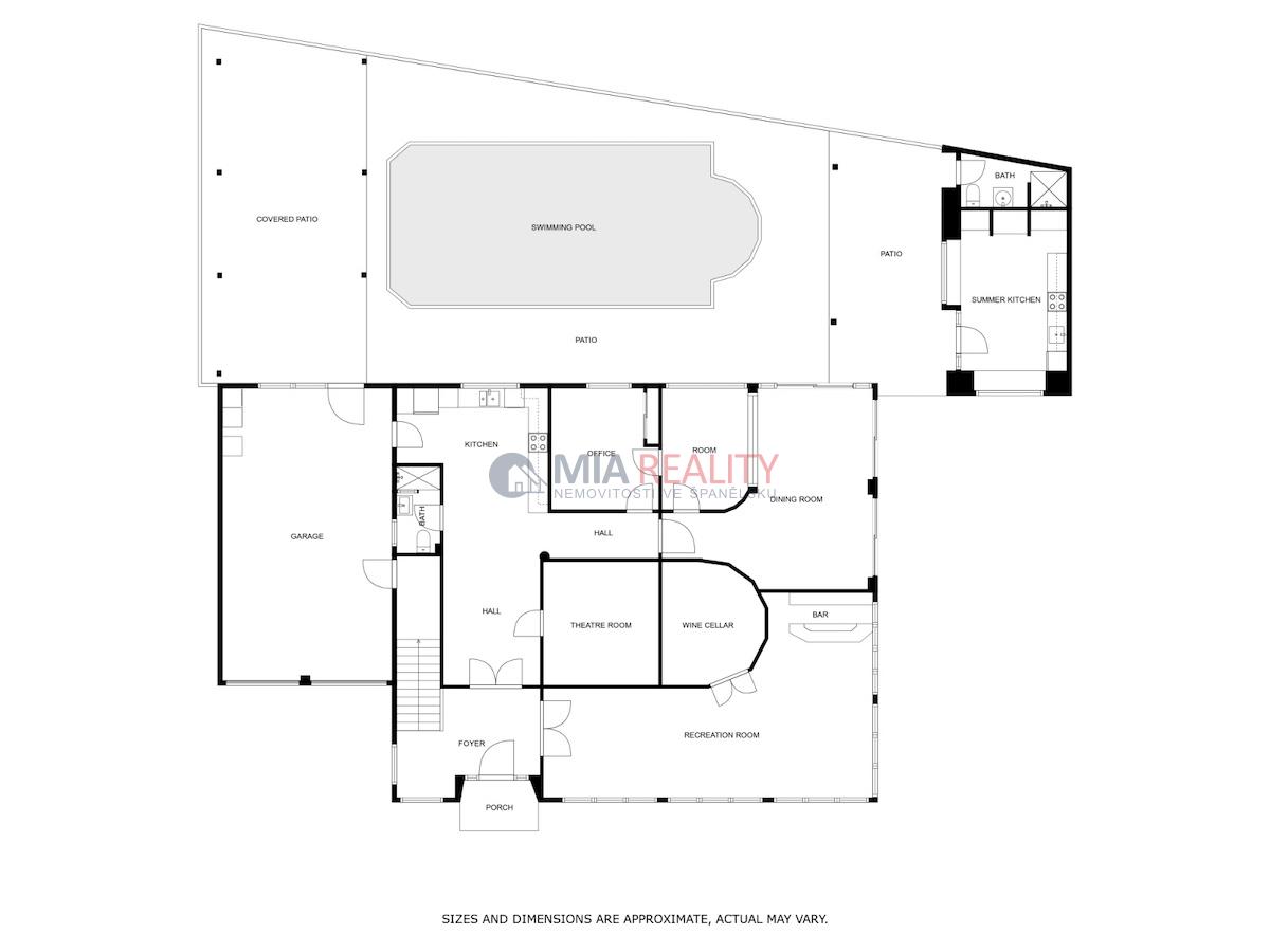 Vila veliký pozemek, kde je soukromý bazén, letní kuchyň vybavenou krbem na dřevo a s kachlovými kamny.