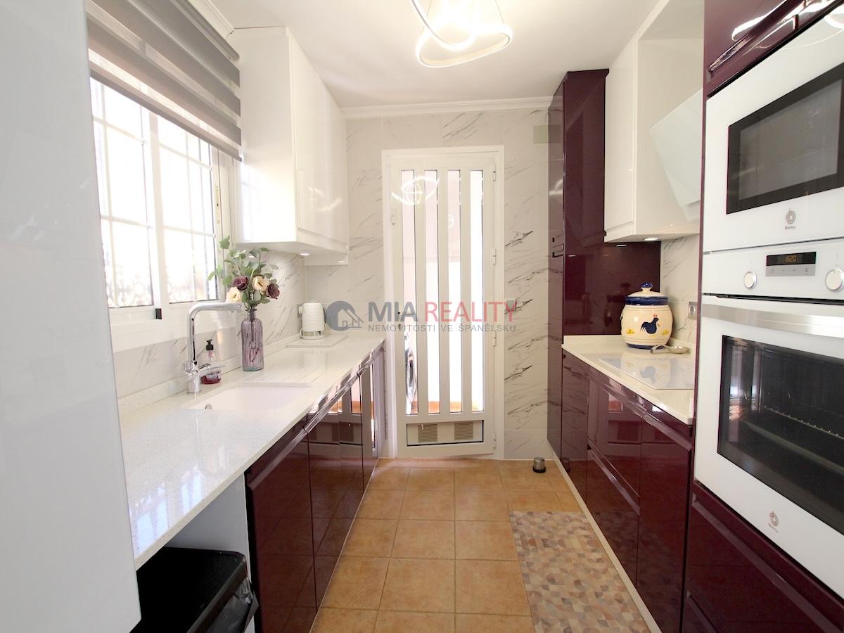Dále je zde designová kuchyň s dostatkem úložných prostor, k tomu technická místnost, která má vstup do zadní zahrady.