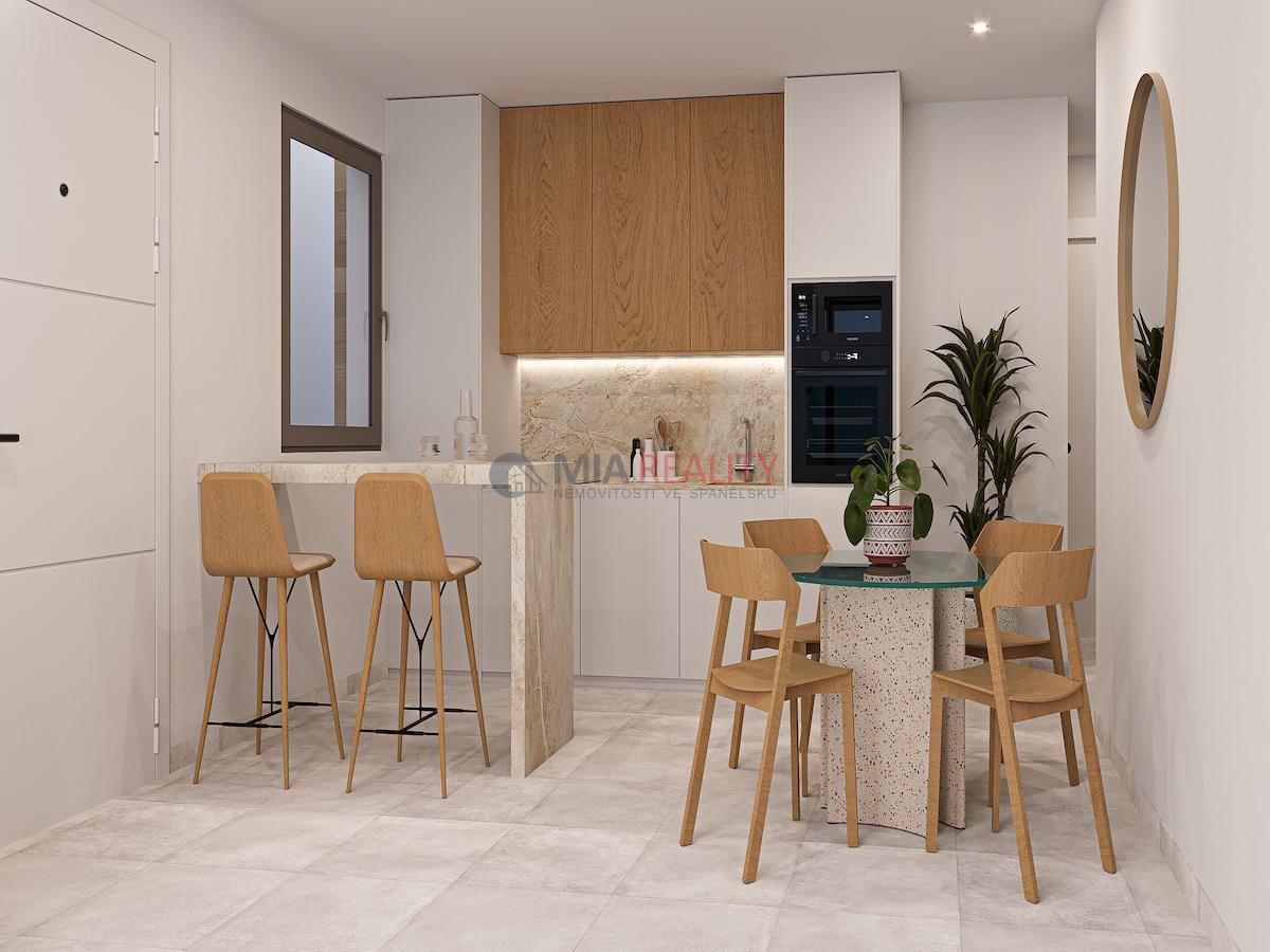 Obytná plocha zahrnuje světlý otevřený obytný prostor, kde je plně zařízená kuchyň s prostorným obývacím pokojem a jídelnou, což je ideální pro moderní bydlení, dále 3 ložnice a 2 koupelny.