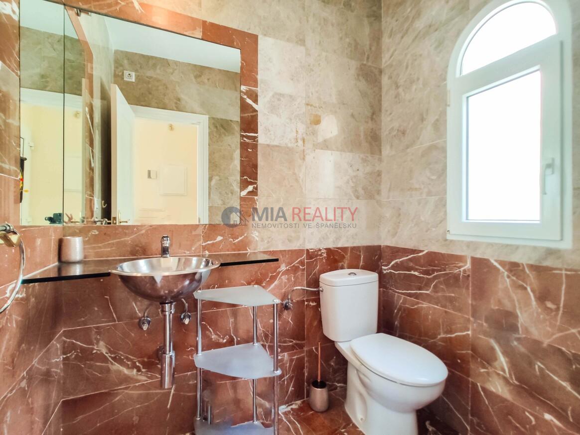 Nemovitost bude prodána plně zařízená a připravená k nastěhování. Venku najdete udržovanou soukromou zahradu, velký soukromý bazén (9 x 4 m), a soukromé parkoviště (12,5 m²).