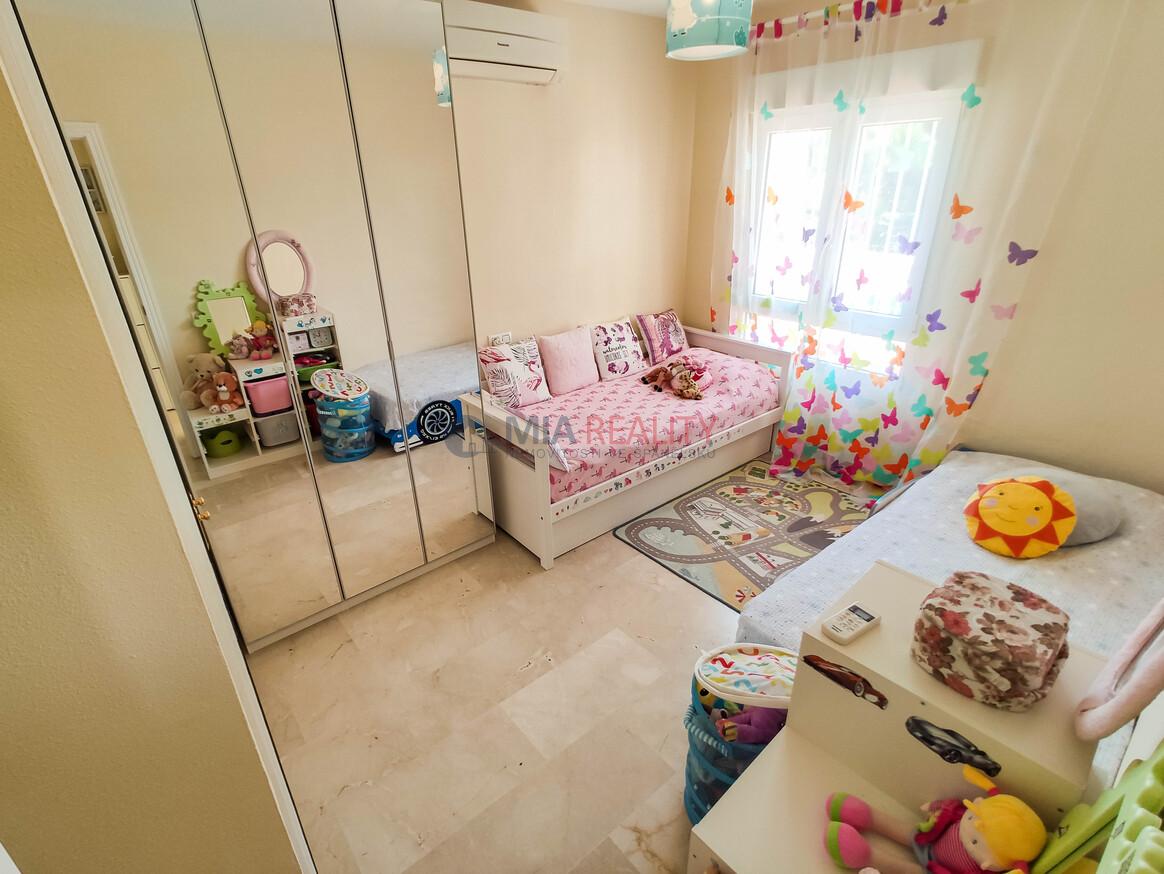 Obytná plocha zahrnuje 4 prostorné ložnice a 4 koupelny, světlý obývací pokoj, plně vybavenou kuchyň a velkou terasu s krásným výhledem na moře. Vila je zařízena ve vysokém standardu s elegantní mramorovou podlahou.
